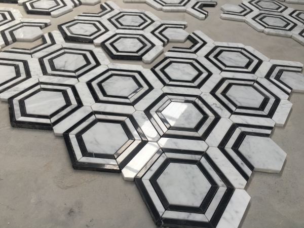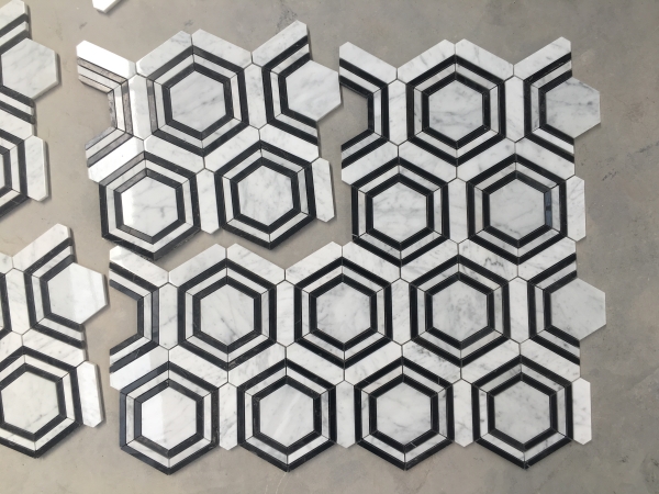 Hexagon Carrara & Nero Marquina marble Mosaic