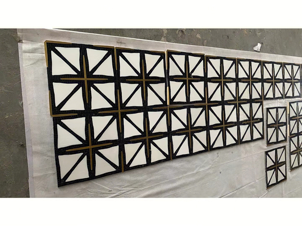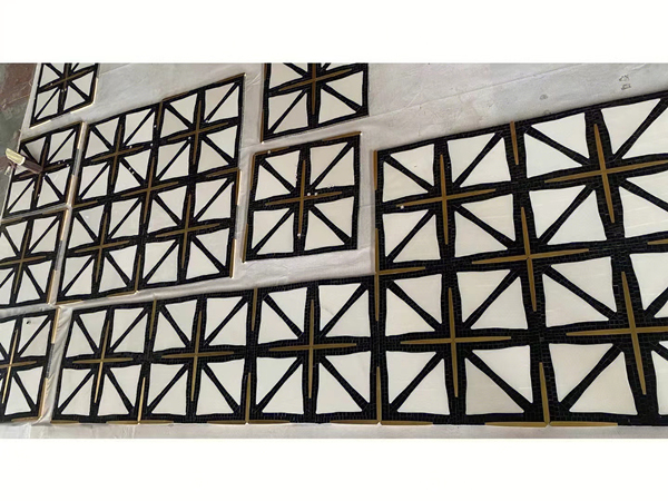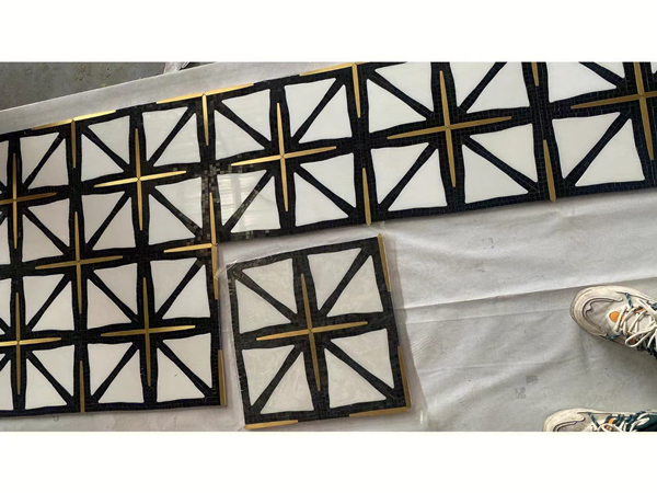 Nero Marquina, Thassos, Bronze Multi Finish Indus marble Mosaic
